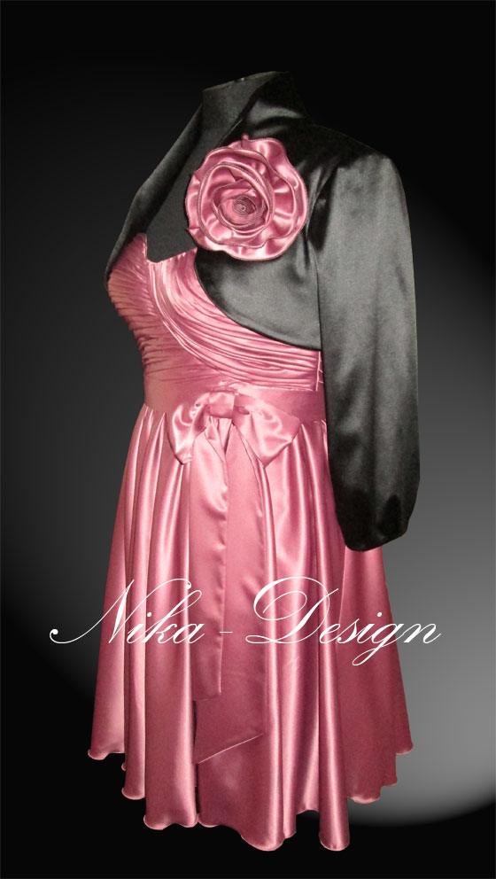 Коктельное платье для именинницы. Лиф платья декорирован драпировкой, которая закладывалась вручную. Платье одевается поверх корсета, который был раннее отшит для девушки. Болеро с цельнокроеным воротником и рукавами длиной в 3/4. К наряду сделала брошь в виде розы.