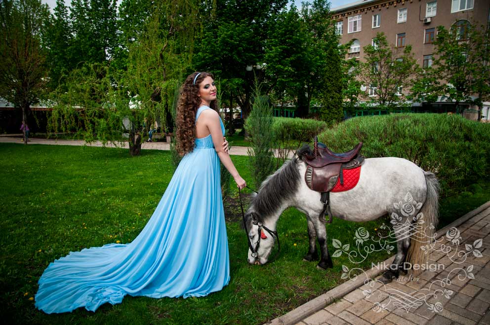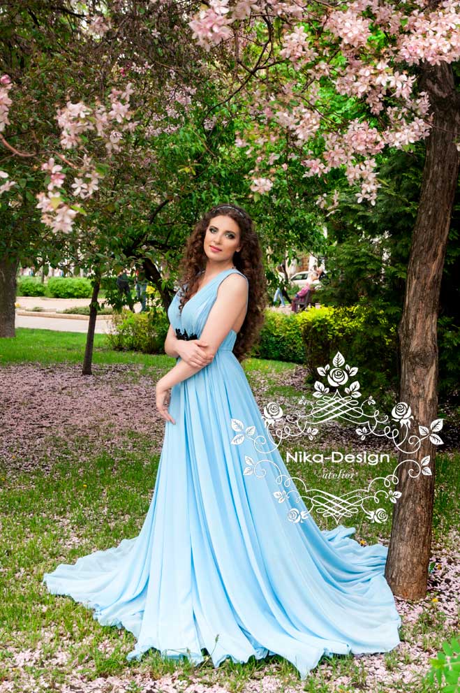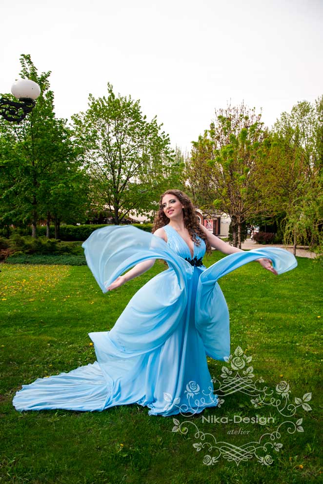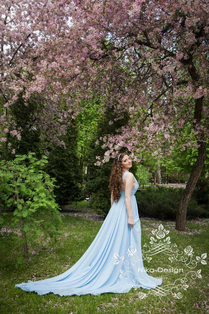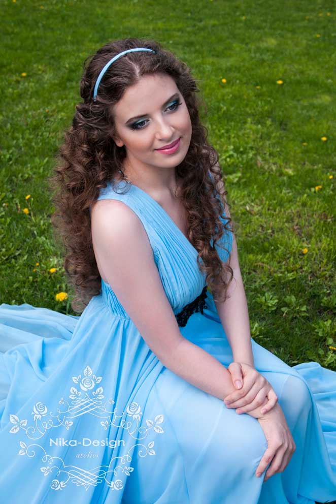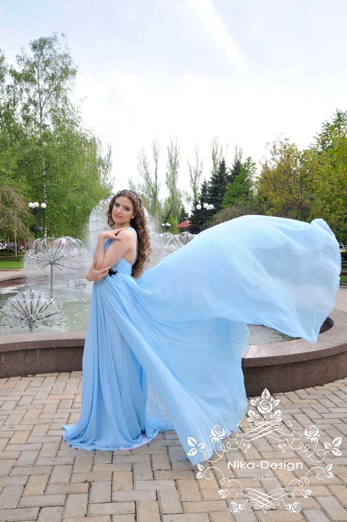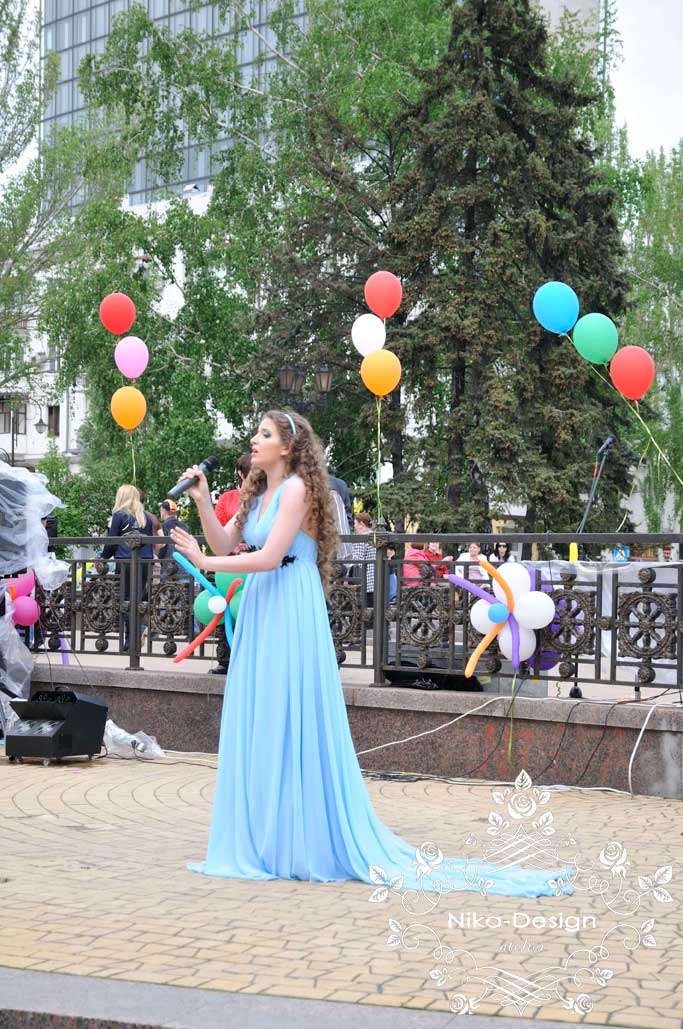 На платье ушло 10м шифона. Верхние 2 слоя - основная ткань и два слоя подъюбника. Платье не на корсетной основе, без чашек, т.к. для пения нельзя передавливать диафрагму. Декор под грудью съемный (на кнопочках), чтобы менять на разные по цветам и отделке. Сзади для того чтобы бретели были на месте, скрепила их декором собранным в виде цепочки.