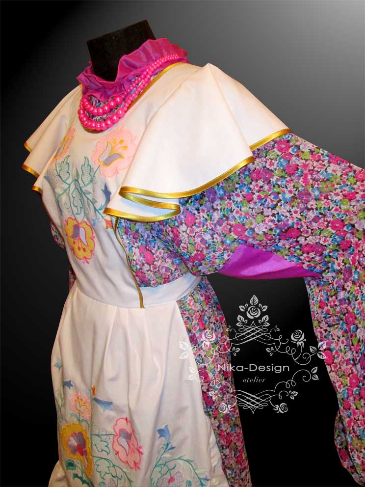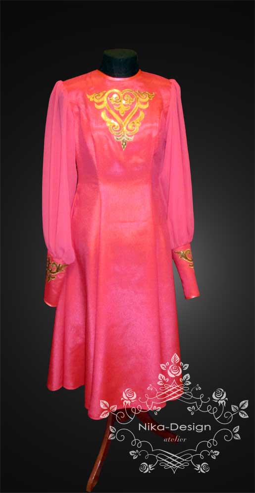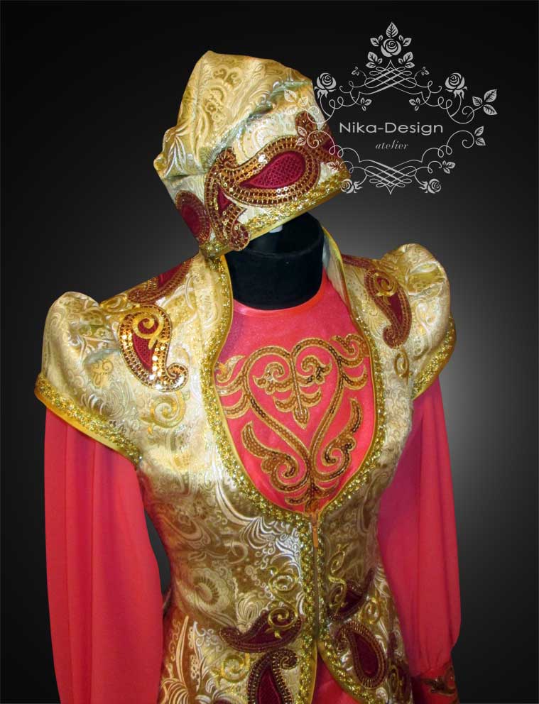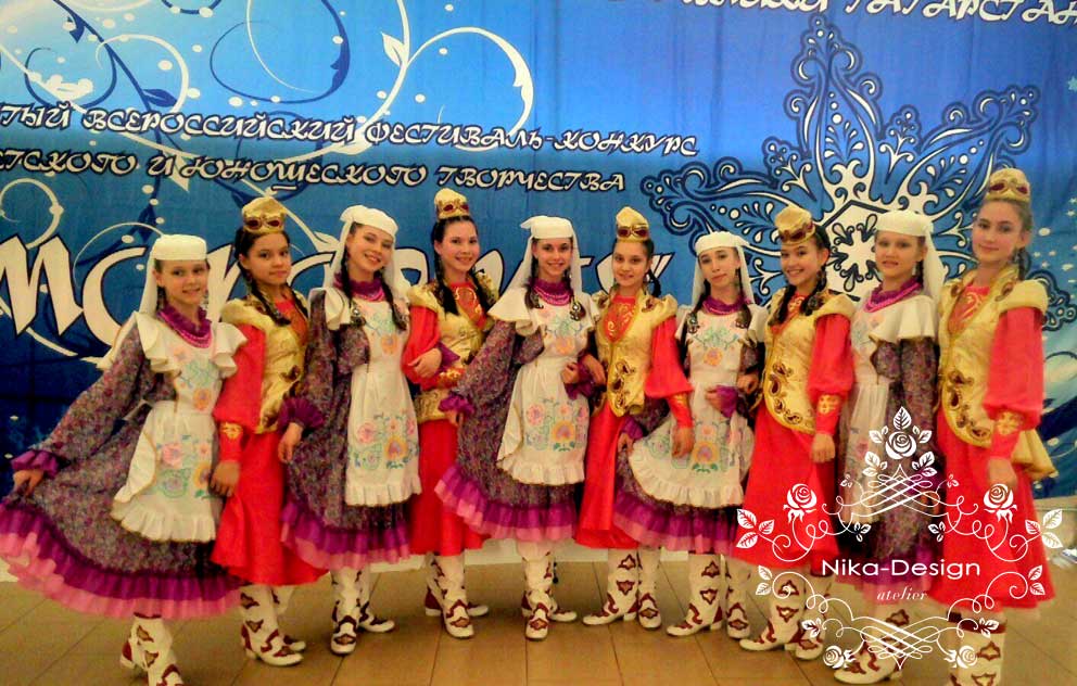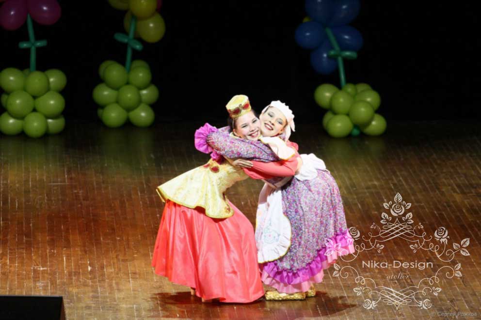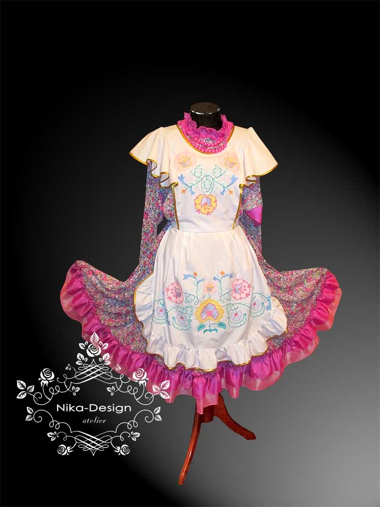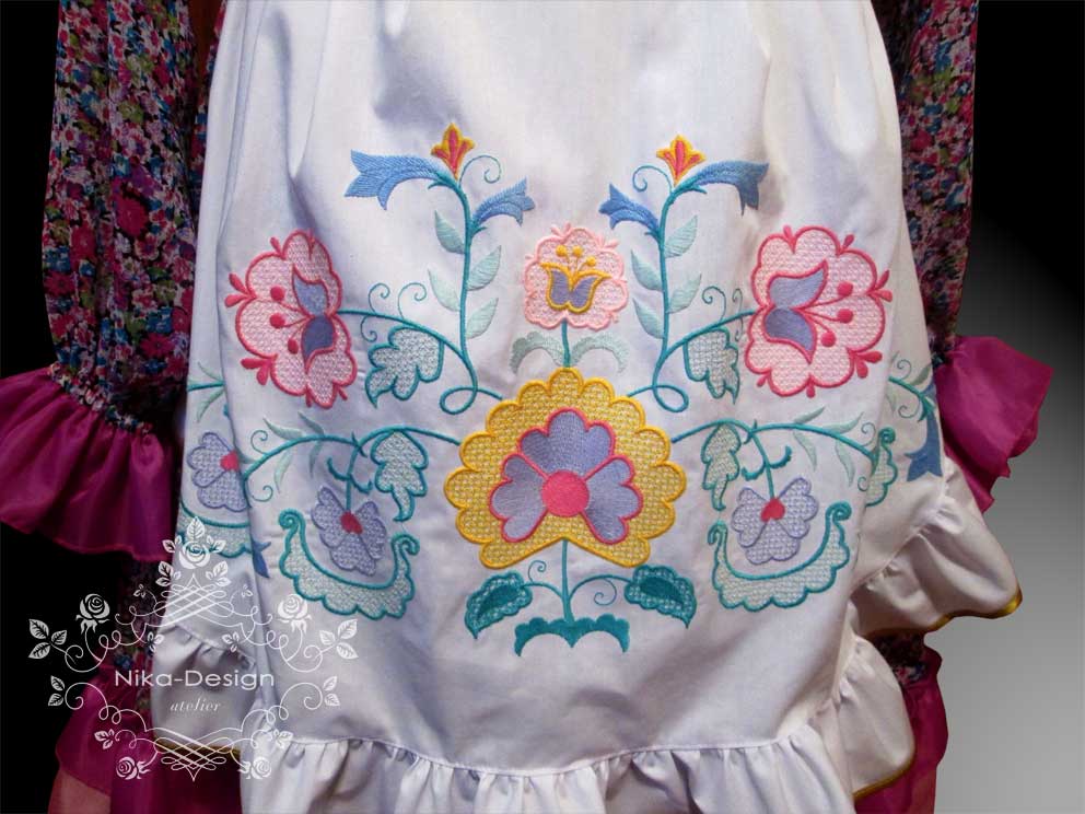 По рисунку, предоставленному хореографом, нами был разработан дизайн и вышиты передники.
