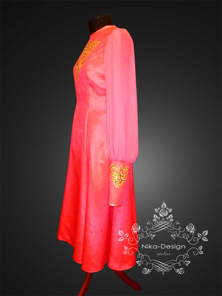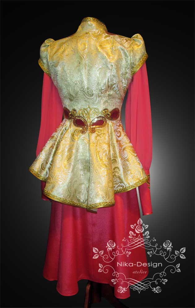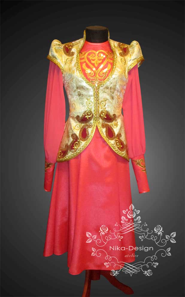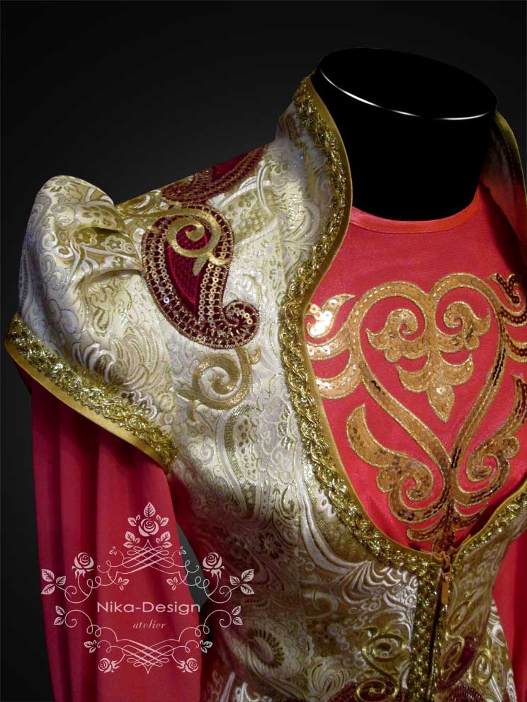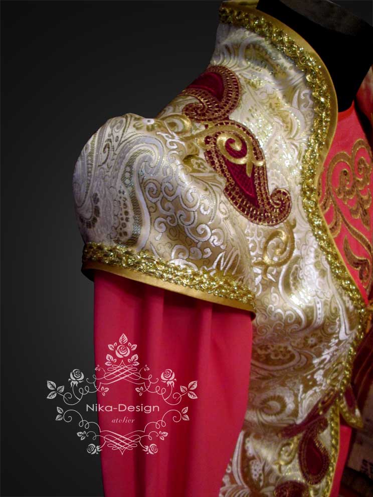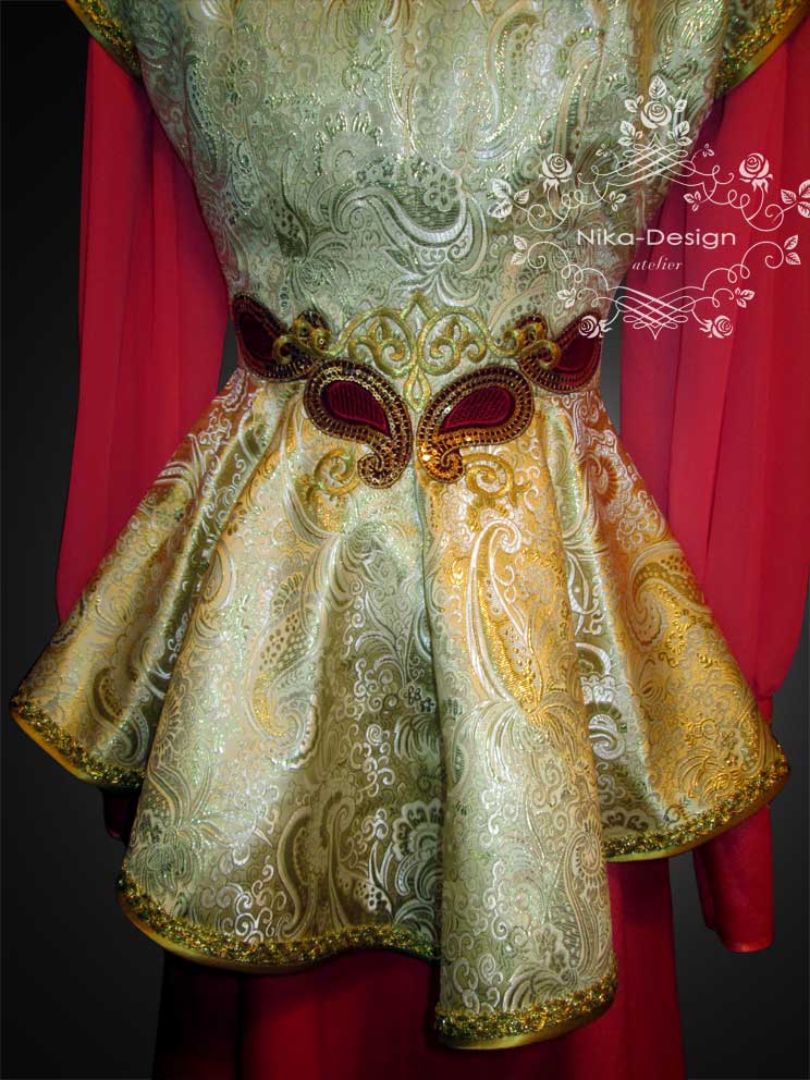 По рисунку, предоставленному хореографом, нами был разработан дизайн и вышиты передники.