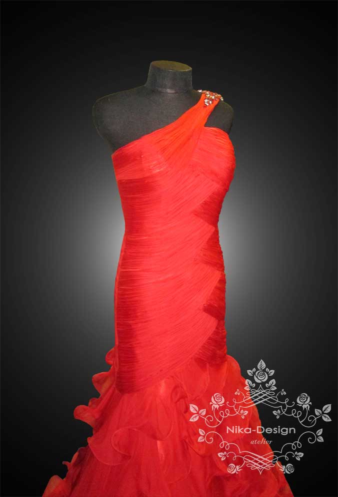 Платье нужно было подогнать по размерам девушки в области бедер, сохранив правильность укладки мелкиих складок драпировки. Еще передвинула бретель с центра спинки на бок - по желанию заказчицы. И конечно же отпарили наряд, т.к. в домашних условия это сделать сложно.