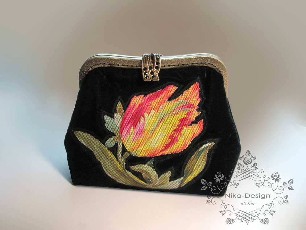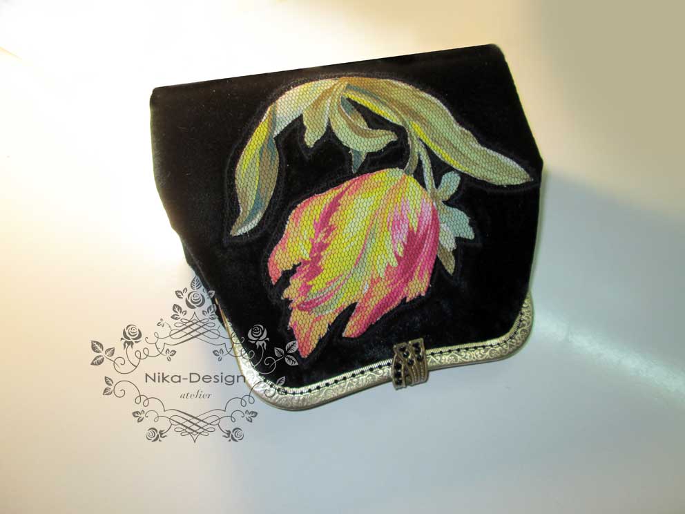 Этот клатч был изготовлен под заказ для донецкого дизайнера Светланы Топаловой. Лекала и технология - моя. Аппликация на сумочке - работа портной из студии С.Топаловой. Клатч имеет жесткую основу.